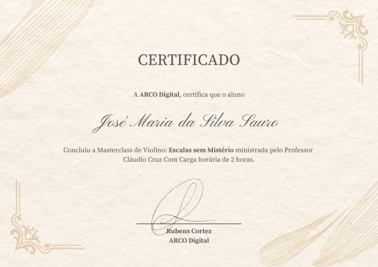 Esta Metodologia é gravada, o que significa que não há orientação individualizada em tempo real. No entanto, o conteúdo foi produzido ao vivo e é apresentado de forma clara e detalhada, com demonstrações práticas e explicações passo a passo. Além disso, você terá acesso ao Método de Violino do Cláudio Cruz em PDF com exercícios para auxiliar no seu aprendizado.
